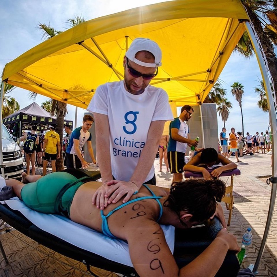 Nos acercamos al mar para ayudar en la recuperación de los nadadores de la III Travesía Arenal y tratamos al campeón de España Pablo Mas Palau, piragüista profesional K1 y K2 en categoría juvenil.